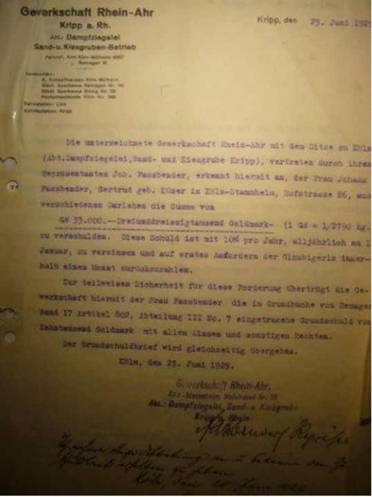 Faßbender / Gewerkschaft Rhein-Ahr, Kripp a. Rhein, Abt. Dampfziegelei, Sand-und Kiesgrubenbetrieb;