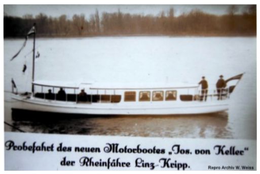So erfolgt am 29. April 1920 die Gründung der Fährgesellschaft Linz-Kripp GmbH mit einem Gründungskapital von 14.000 Mark. An Betriebsmitteln waren nur noch die Fährgeräte vorhanden, bestehend aus der eisernen Gierponte und einem altersschwachem, kleinen Personenmotorboot.