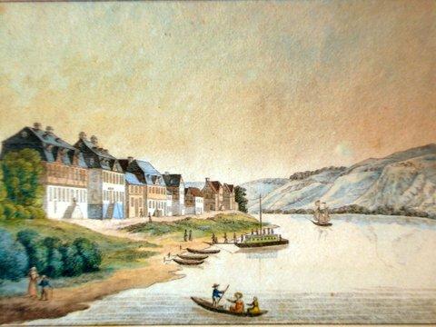 Foto: KRIPP, Rheinfronthäuser vor 1830, vermutlich aus den im Meiler mit Pappelholz gebrannten Ziegeln erbaut