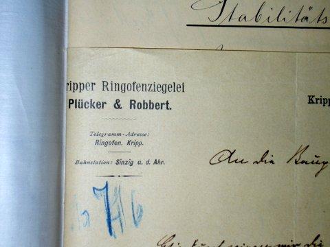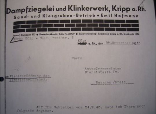Kripper Dampfziegelei & Klinkerwerke G.m.b.h Emil Hofmann, Maarweg 23, (sowie versch.Büroadressen: Hauptstr. 2a bzw. Köln-Sülz, Emmastr.3 (LHAKo 441/45800)
